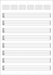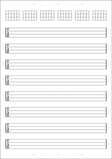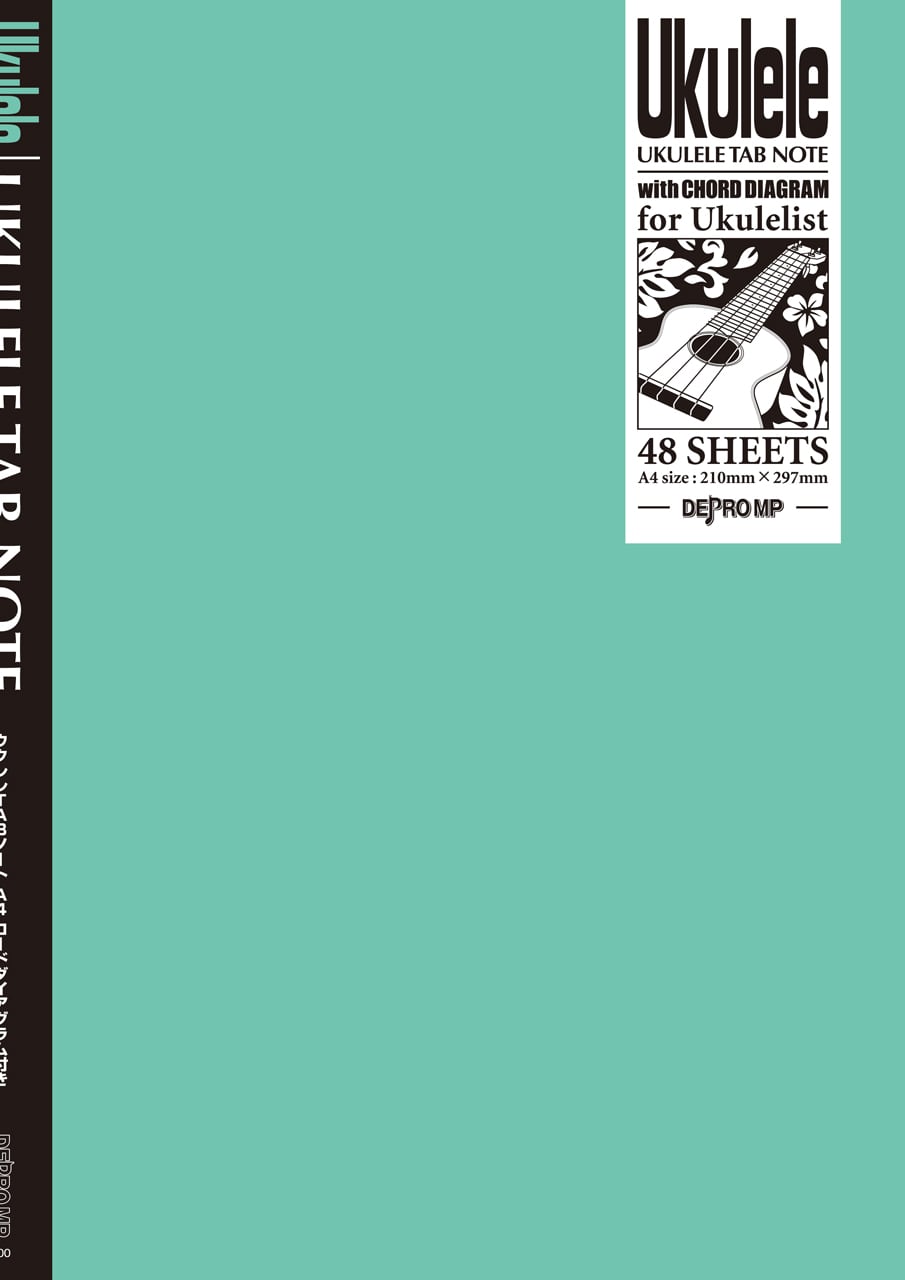 A4サイズのウクレレTAB譜ノート。各ページの上段にコードダイアグラムのメモがついています。