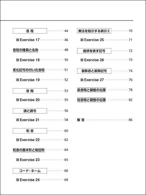 楽譜を読む上で必要な基礎的な知識を、やさしく分りやすくまとめた音楽テキストです。基本的なやさしい理論や表示法を知ることで、音楽への理解が深まり、演奏にも役立つことでしょう。それぞれの項目には、解説のほかに練習問題を設けましたので、覚えた課題の確認や復習などに活用できます。