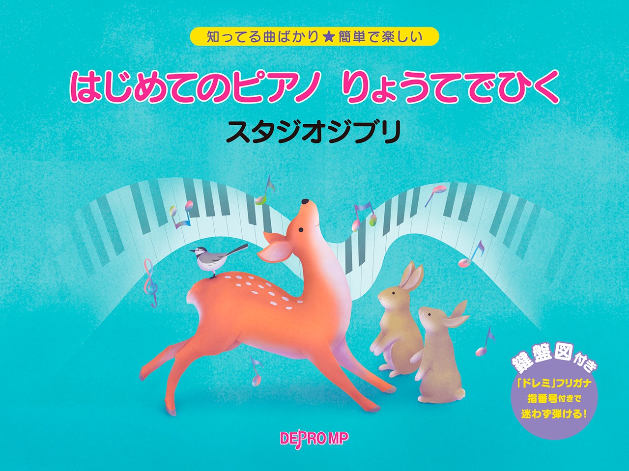 スタジオジブリの曲をドレミ振り仮名付きの楽譜を見ながら両手で弾きましょう。最初のポジションがわかる鍵盤図、指番号、指くぐり・指またぎのマーク付きで迷わず弾けます。
